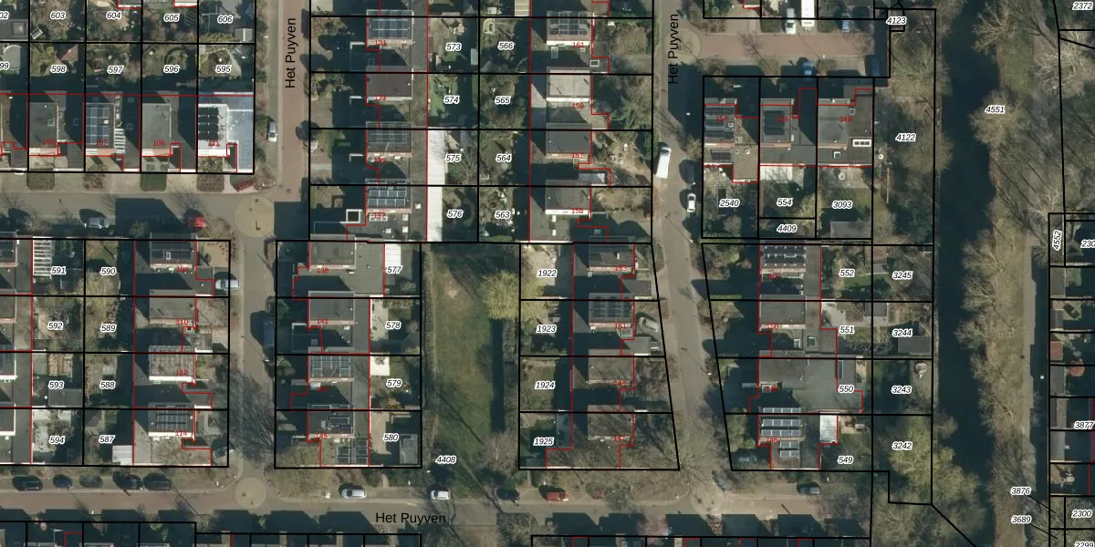 Gebruik de zoekbalk of klik op een perceel om informatie over het perceel te bekijken.