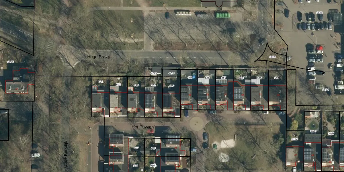 Gebruik de zoekbalk of klik op een perceel om informatie over het perceel te bekijken.
