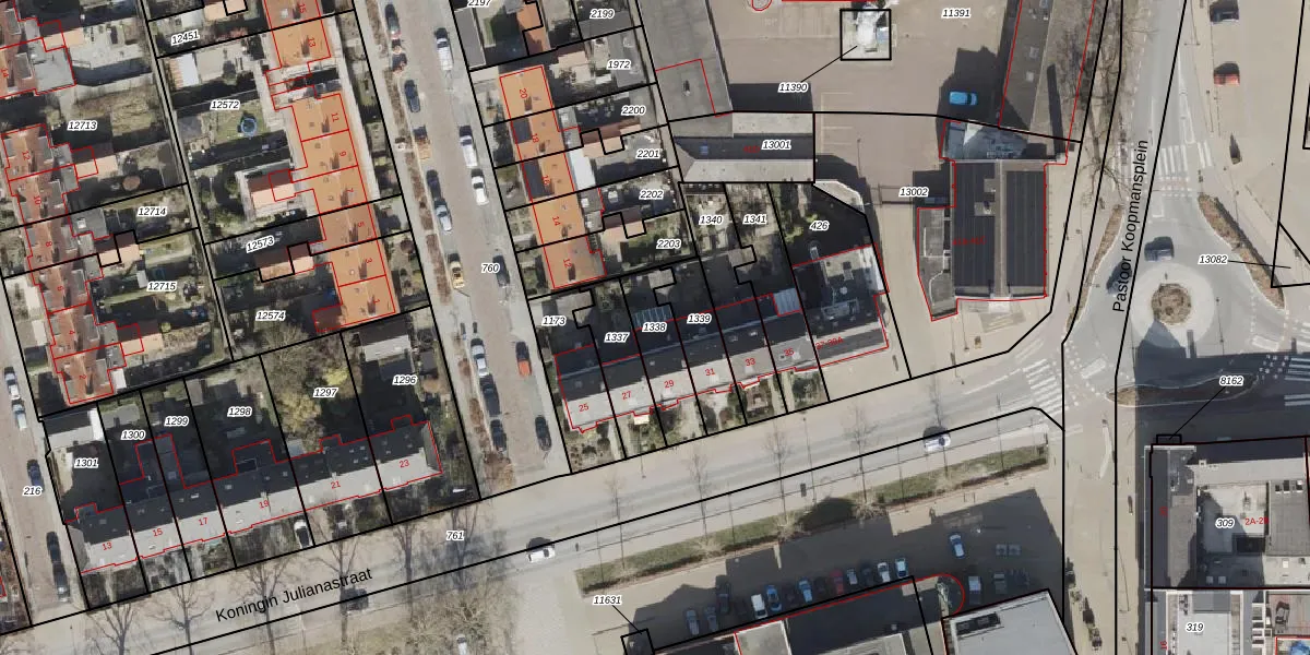 Gebruik de zoekbalk of klik op een perceel om informatie over het perceel te bekijken.