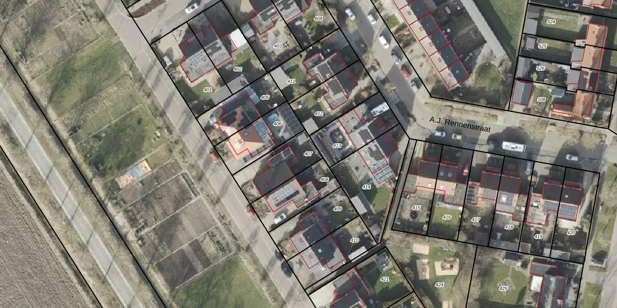 Gebruik de zoekbalk of klik op een perceel om informatie over het perceel te bekijken.