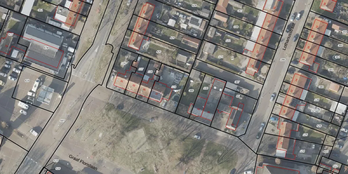 Gebruik de zoekbalk of klik op een perceel om informatie over het perceel te bekijken.