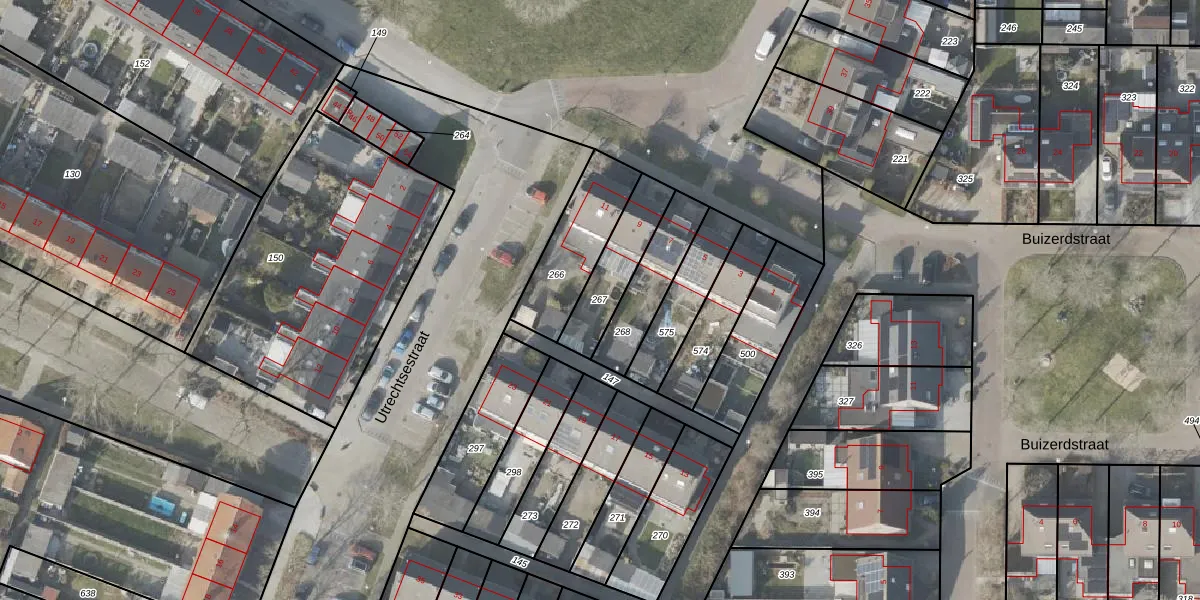 Gebruik de zoekbalk of klik op een perceel om informatie over het perceel te bekijken.