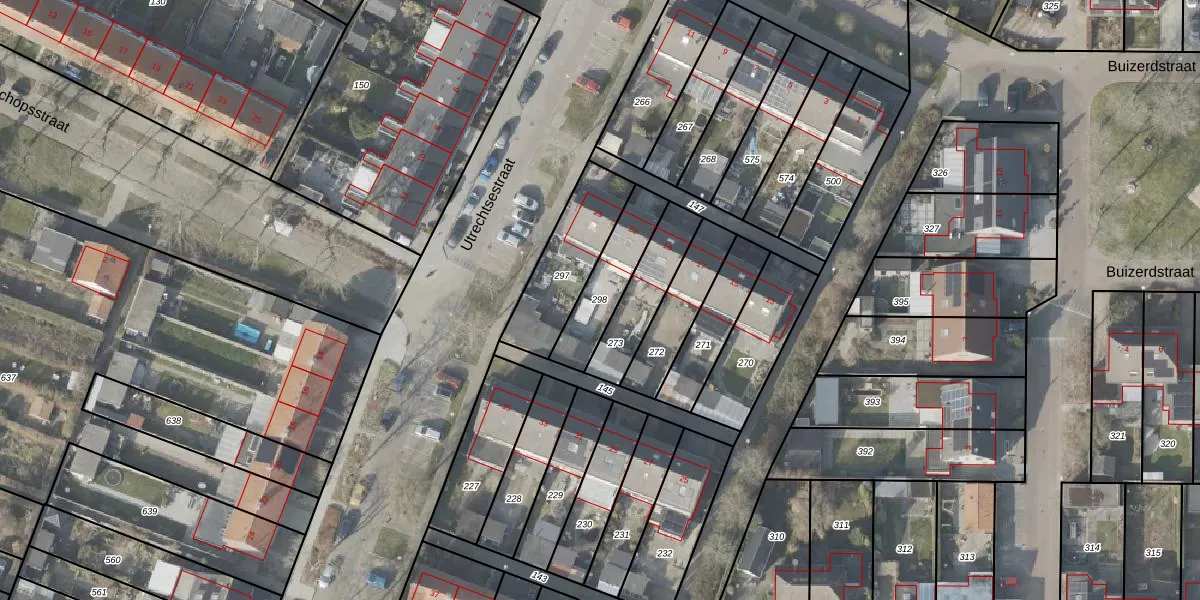Gebruik de zoekbalk of klik op een perceel om informatie over het perceel te bekijken.