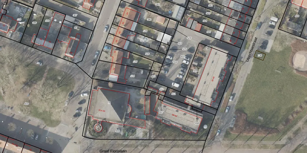 Gebruik de zoekbalk of klik op een perceel om informatie over het perceel te bekijken.