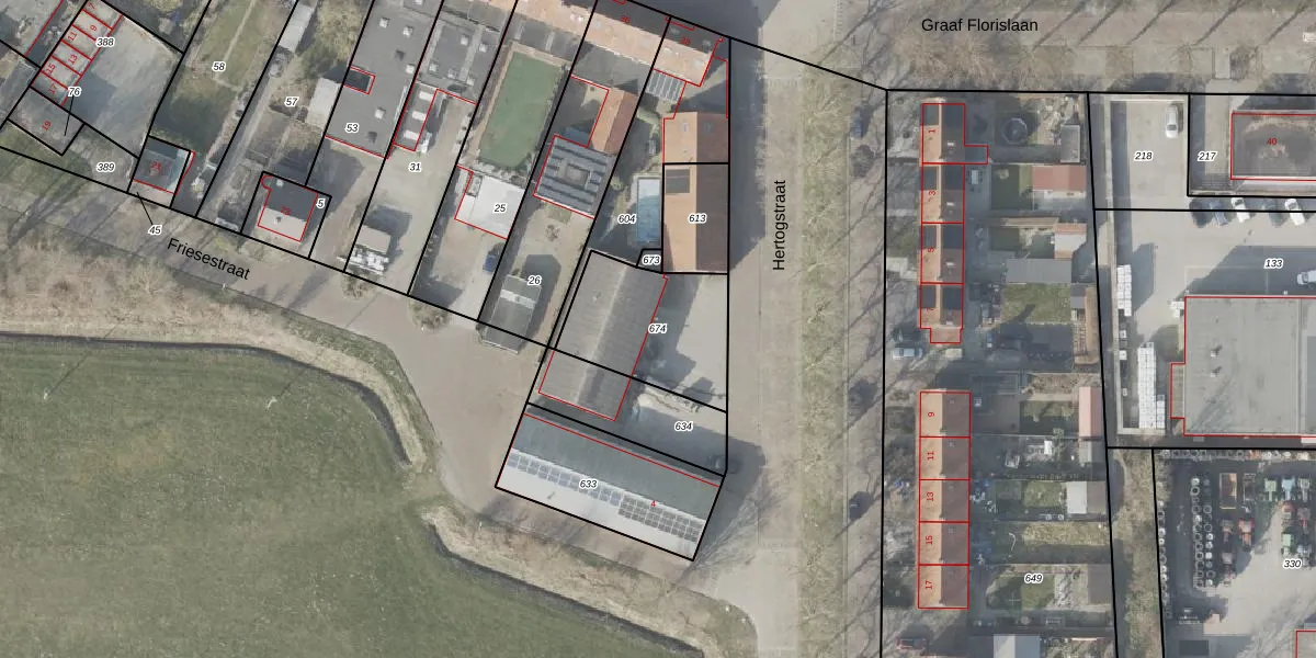 Gebruik de zoekbalk of klik op een perceel om informatie over het perceel te bekijken.