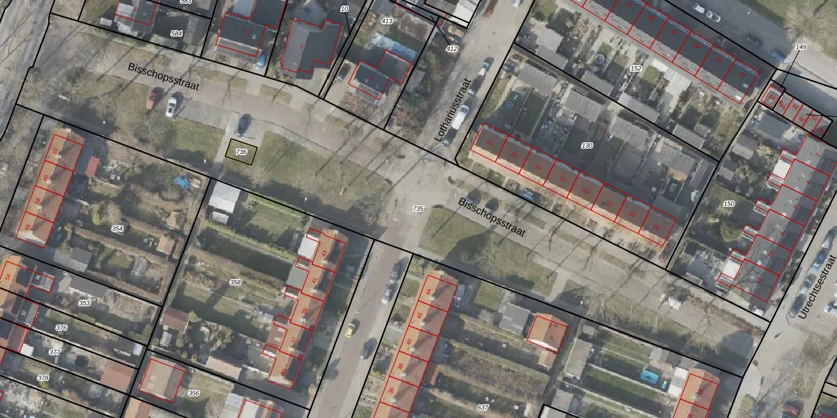 Gebruik de zoekbalk of klik op een perceel om informatie over het perceel te bekijken.