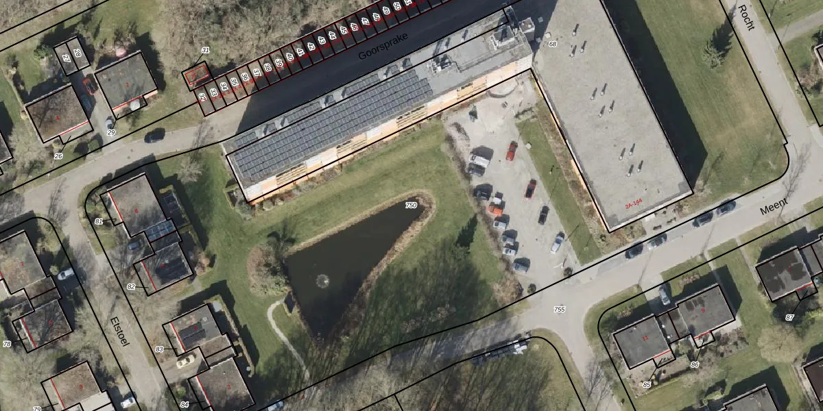 Gebruik de zoekbalk of klik op een perceel om informatie over het perceel te bekijken.