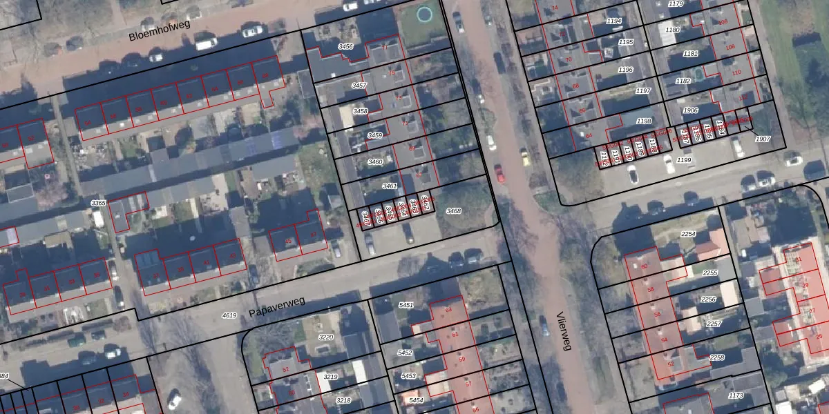 Gebruik de zoekbalk of klik op een perceel om informatie over het perceel te bekijken.