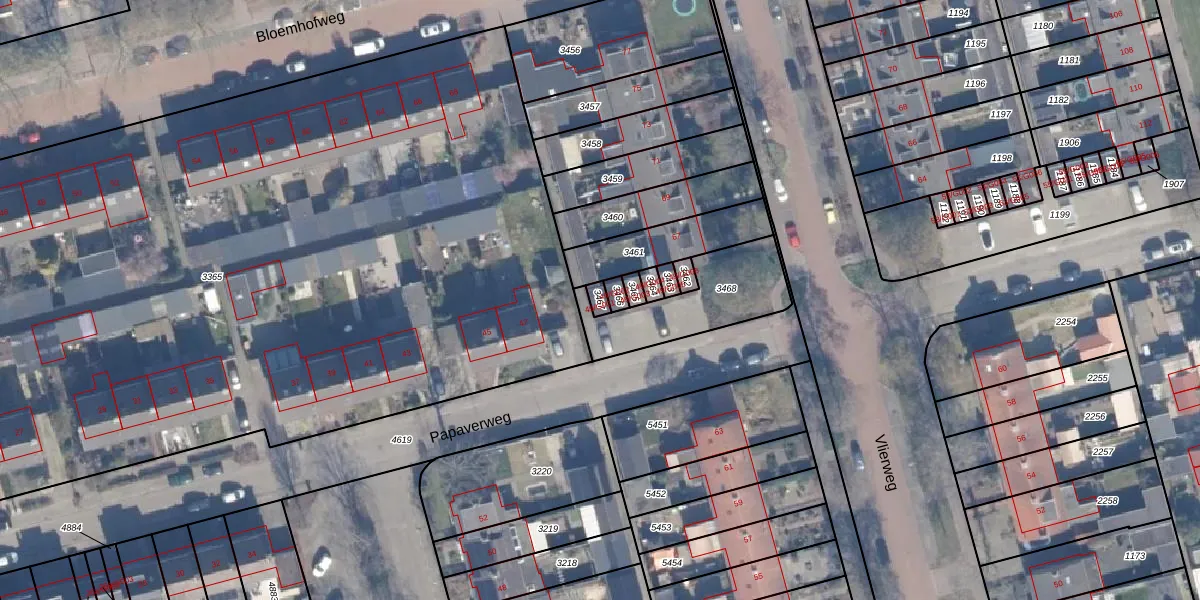 Gebruik de zoekbalk of klik op een perceel om informatie over het perceel te bekijken.