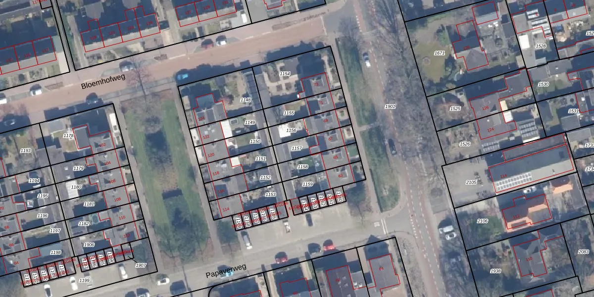 Gebruik de zoekbalk of klik op een perceel om informatie over het perceel te bekijken.