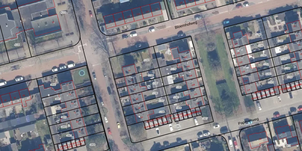 Gebruik de zoekbalk of klik op een perceel om informatie over het perceel te bekijken.