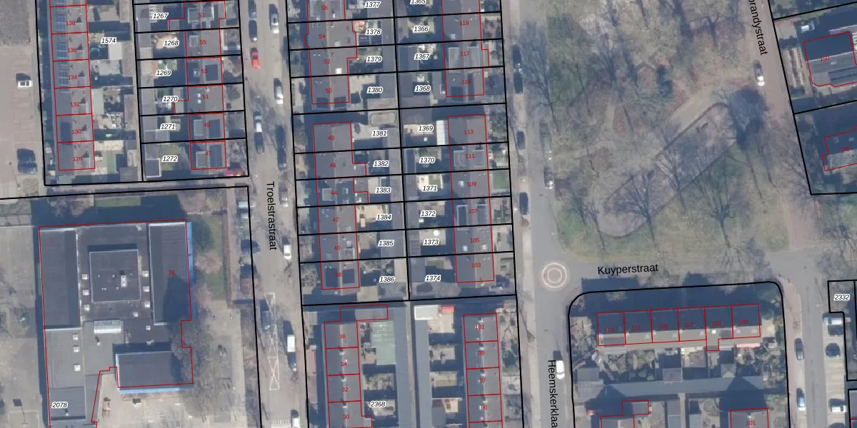 Gebruik de zoekbalk of klik op een perceel om informatie over het perceel te bekijken.