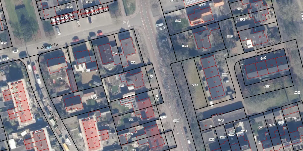 Gebruik de zoekbalk of klik op een perceel om informatie over het perceel te bekijken.