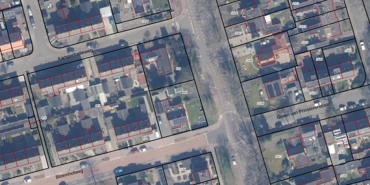 Gebruik de zoekbalk of klik op een perceel om informatie over het perceel te bekijken.
