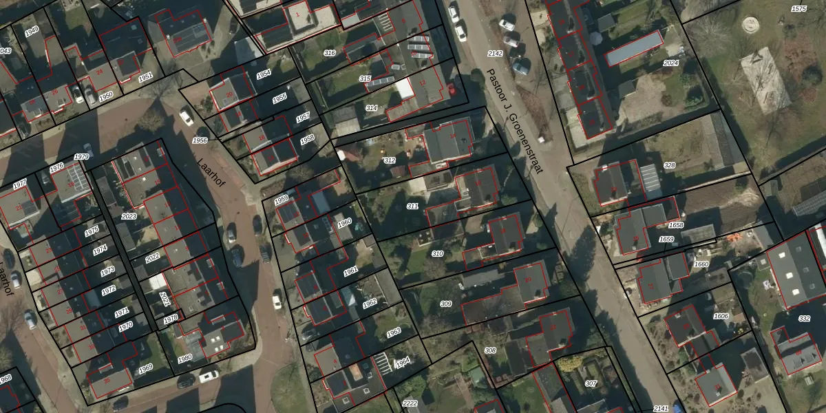 Gebruik de zoekbalk of klik op een perceel om informatie over het perceel te bekijken.