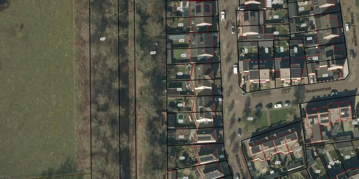 Gebruik de zoekbalk of klik op een perceel om informatie over het perceel te bekijken.