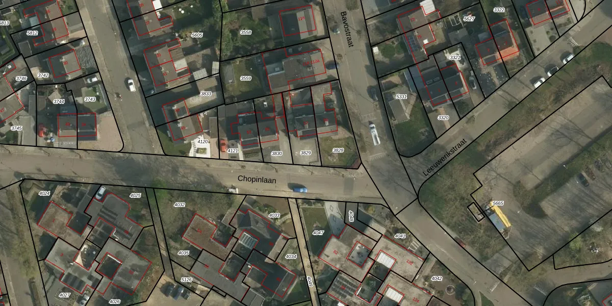 Gebruik de zoekbalk of klik op een perceel om informatie over het perceel te bekijken.