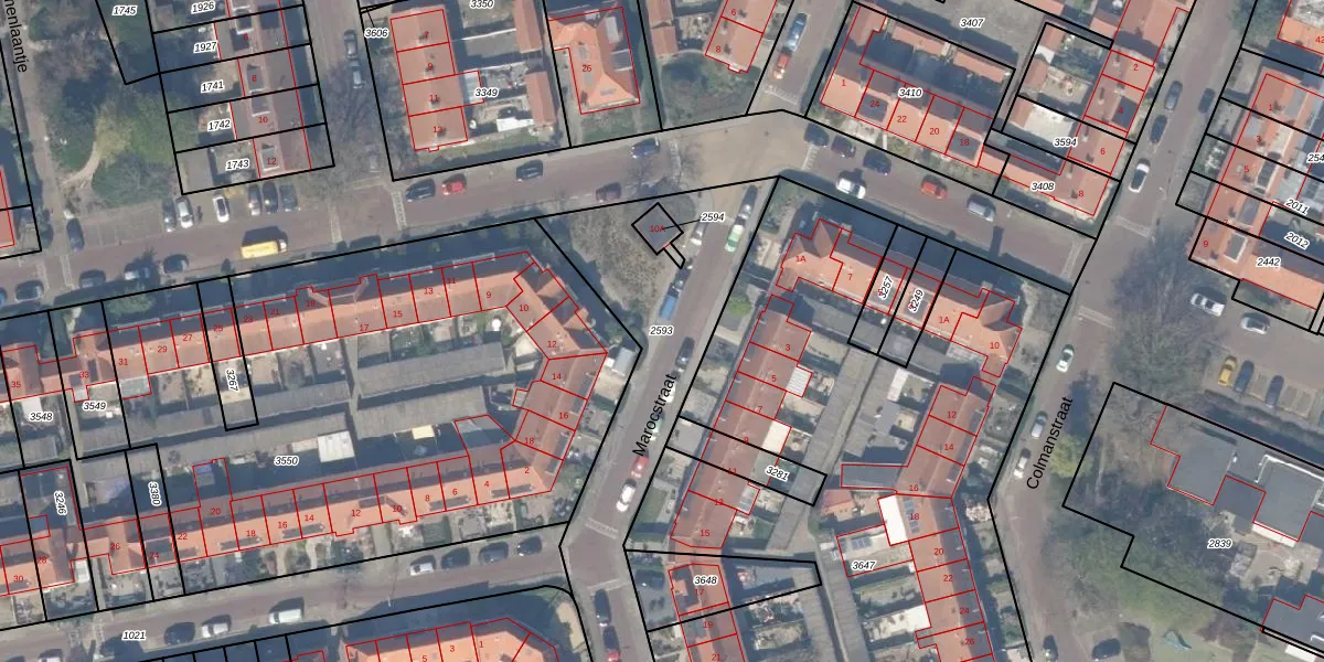 Gebruik de zoekbalk of klik op een perceel om informatie over het perceel te bekijken.