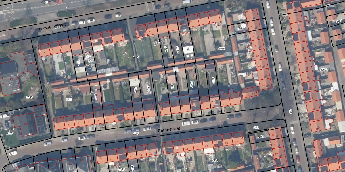 Gebruik de zoekbalk of klik op een perceel om informatie over het perceel te bekijken.