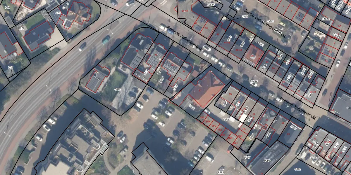 Gebruik de zoekbalk of klik op een perceel om informatie over het perceel te bekijken.