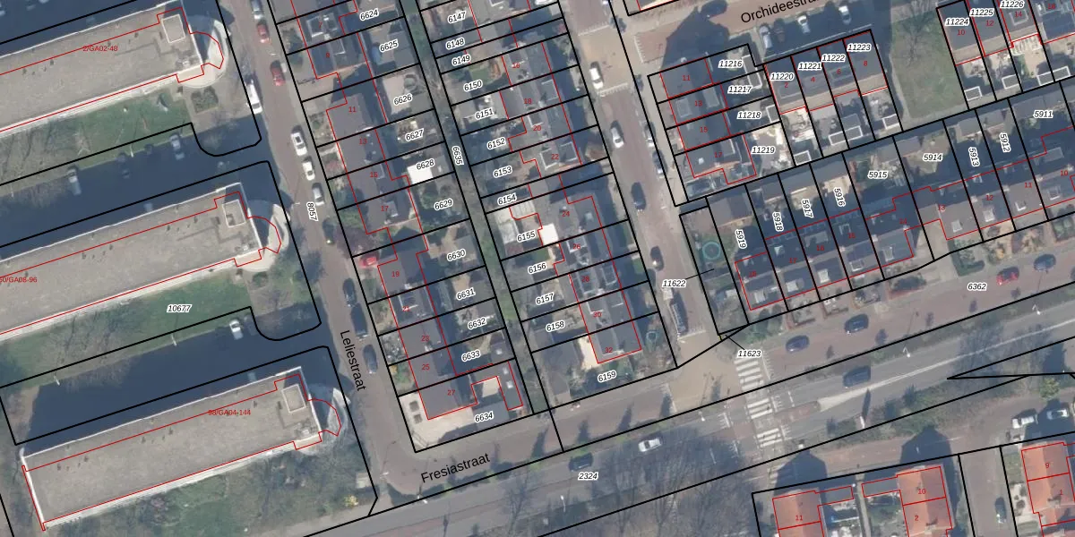 Gebruik de zoekbalk of klik op een perceel om informatie over het perceel te bekijken.