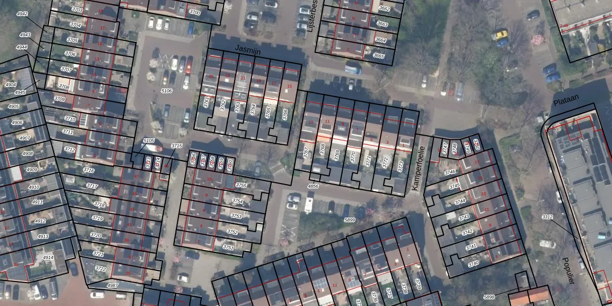 Gebruik de zoekbalk of klik op een perceel om informatie over het perceel te bekijken.