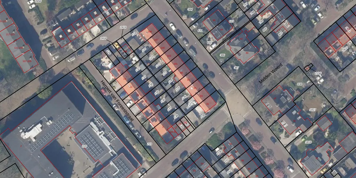 Gebruik de zoekbalk of klik op een perceel om informatie over het perceel te bekijken.