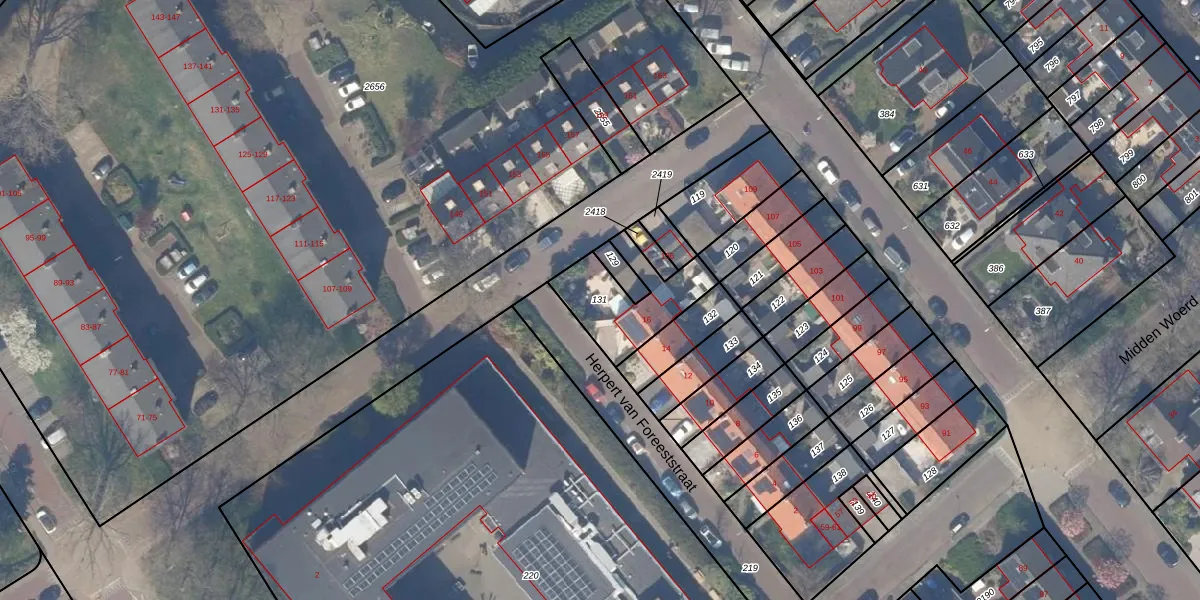 Gebruik de zoekbalk of klik op een perceel om informatie over het perceel te bekijken.