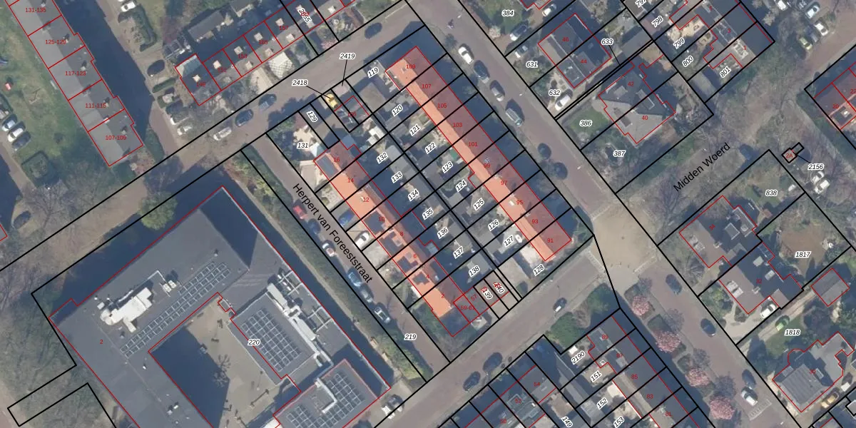 Gebruik de zoekbalk of klik op een perceel om informatie over het perceel te bekijken.