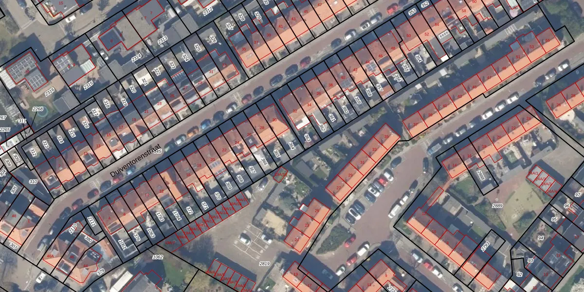 Gebruik de zoekbalk of klik op een perceel om informatie over het perceel te bekijken.
