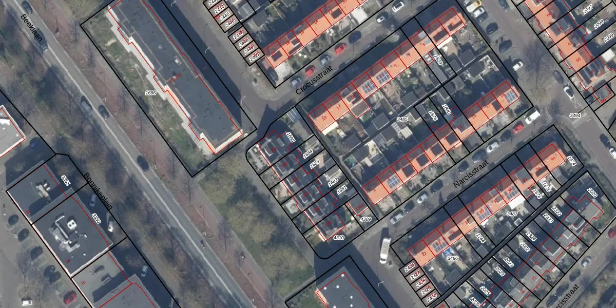 Gebruik de zoekbalk of klik op een perceel om informatie over het perceel te bekijken.