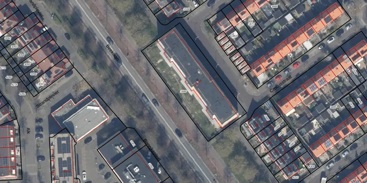 Gebruik de zoekbalk of klik op een perceel om informatie over het perceel te bekijken.