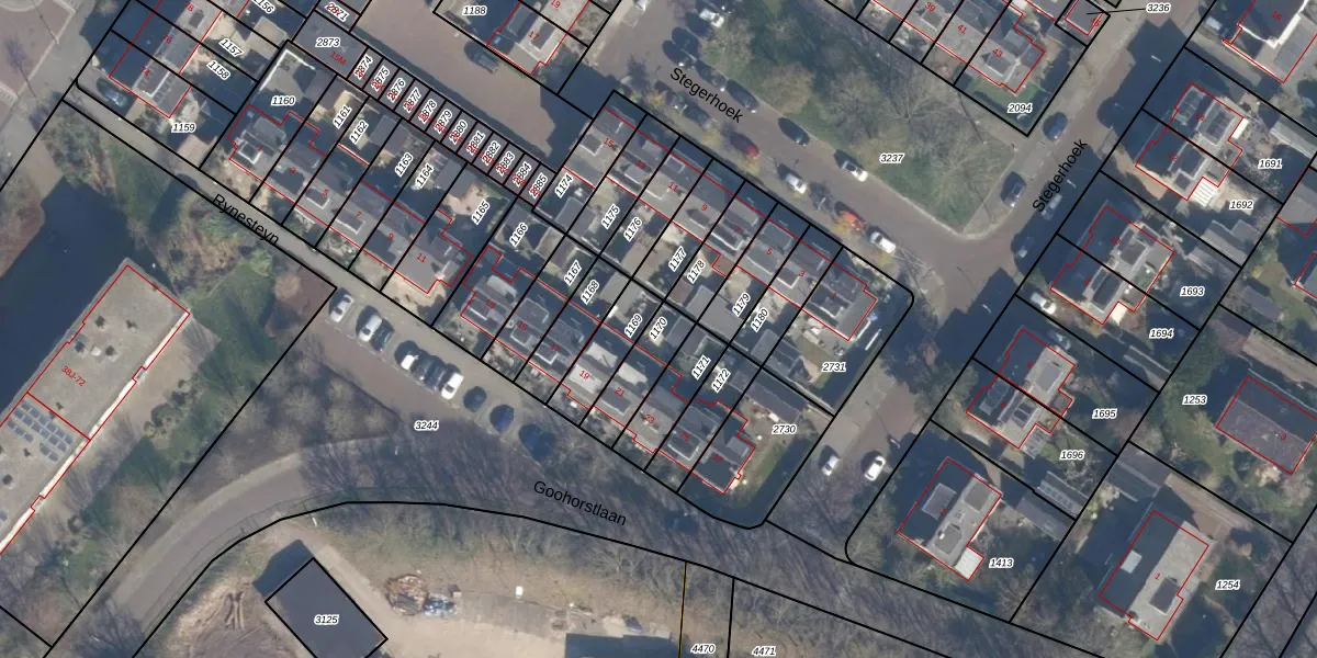 Gebruik de zoekbalk of klik op een perceel om informatie over het perceel te bekijken.