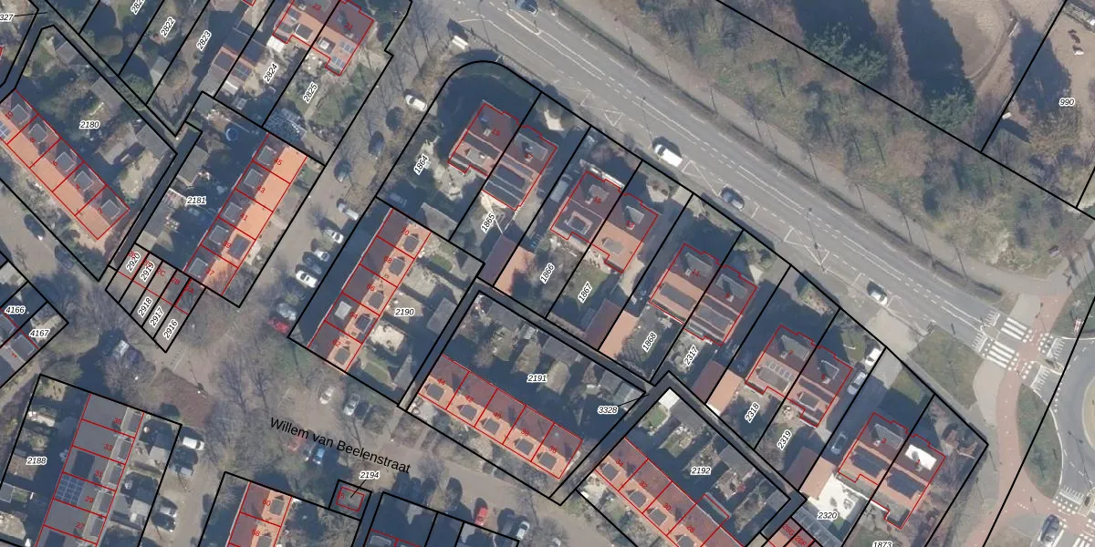 Gebruik de zoekbalk of klik op een perceel om informatie over het perceel te bekijken.