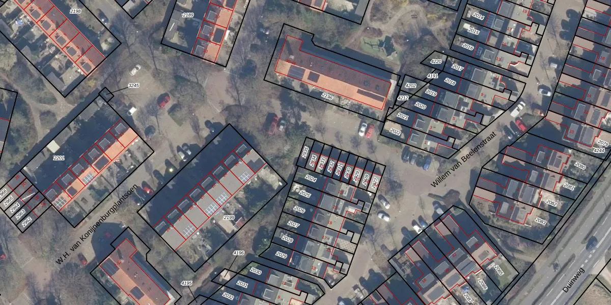 Gebruik de zoekbalk of klik op een perceel om informatie over het perceel te bekijken.