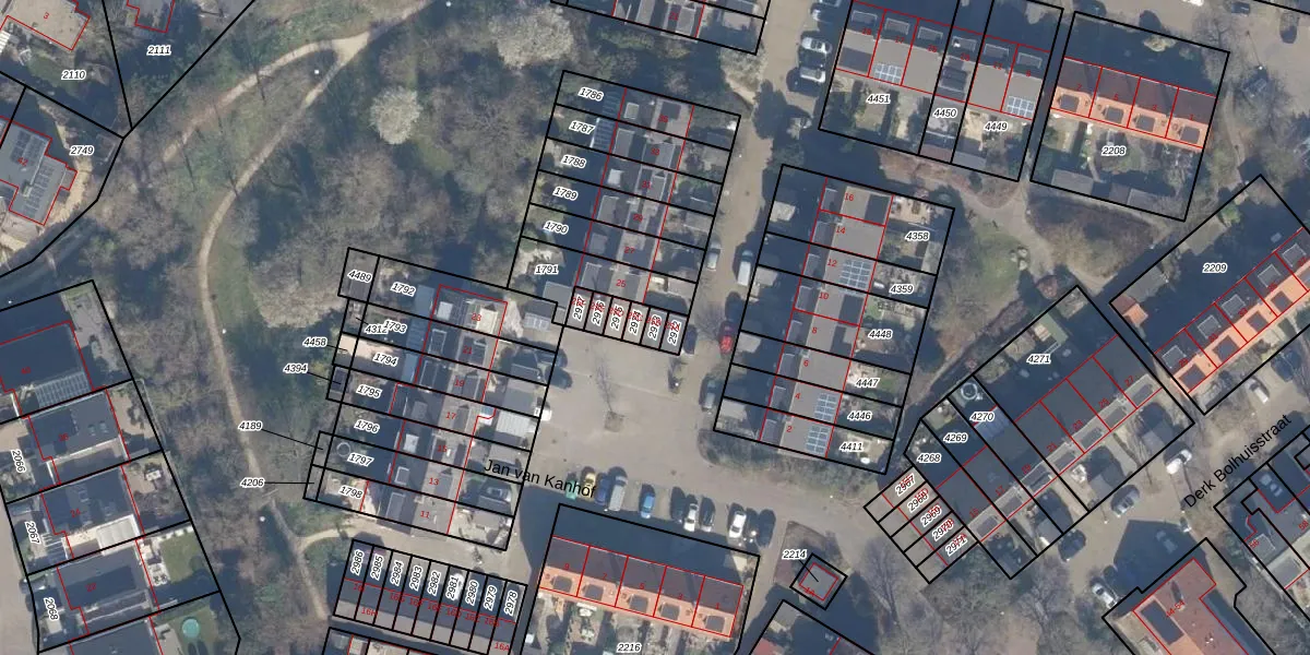 Gebruik de zoekbalk of klik op een perceel om informatie over het perceel te bekijken.