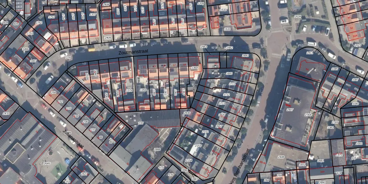 Gebruik de zoekbalk of klik op een perceel om informatie over het perceel te bekijken.