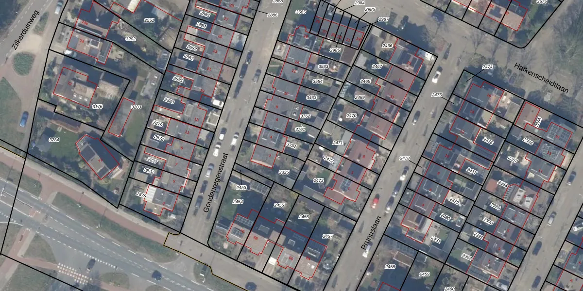 Gebruik de zoekbalk of klik op een perceel om informatie over het perceel te bekijken.