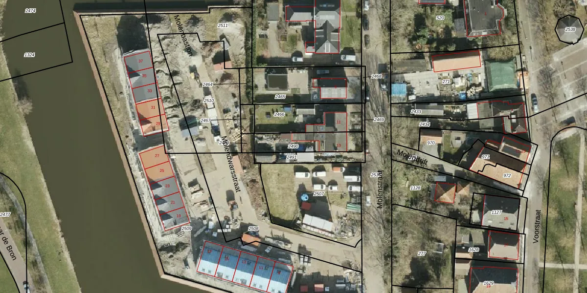 Gebruik de zoekbalk of klik op een perceel om informatie over het perceel te bekijken.