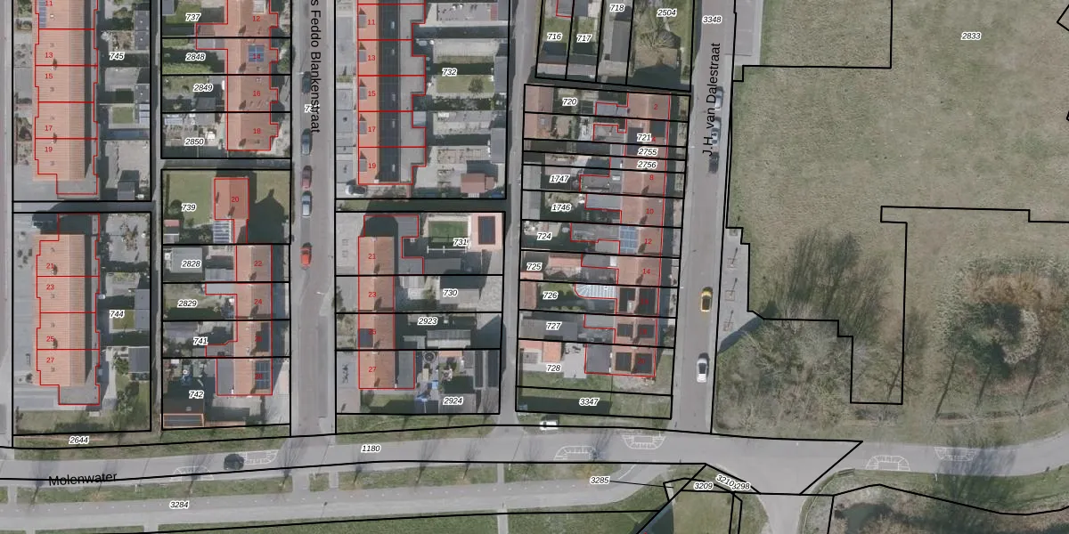 Gebruik de zoekbalk of klik op een perceel om informatie over het perceel te bekijken.