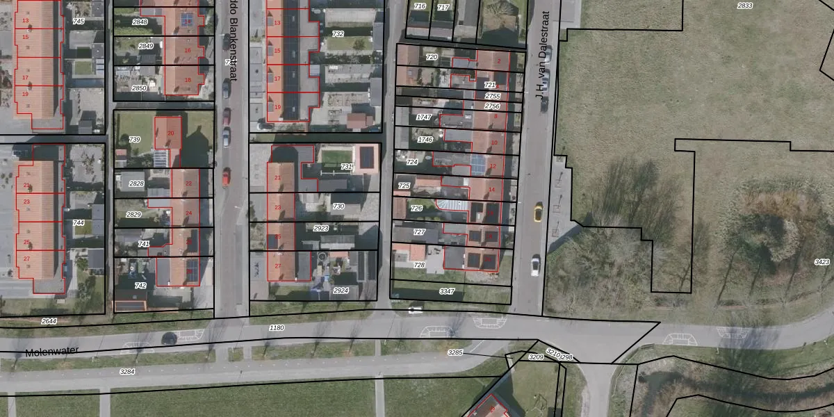 Gebruik de zoekbalk of klik op een perceel om informatie over het perceel te bekijken.