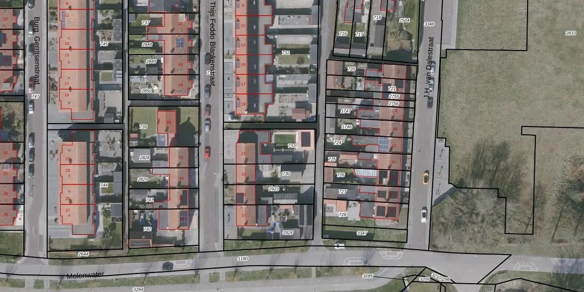Gebruik de zoekbalk of klik op een perceel om informatie over het perceel te bekijken.