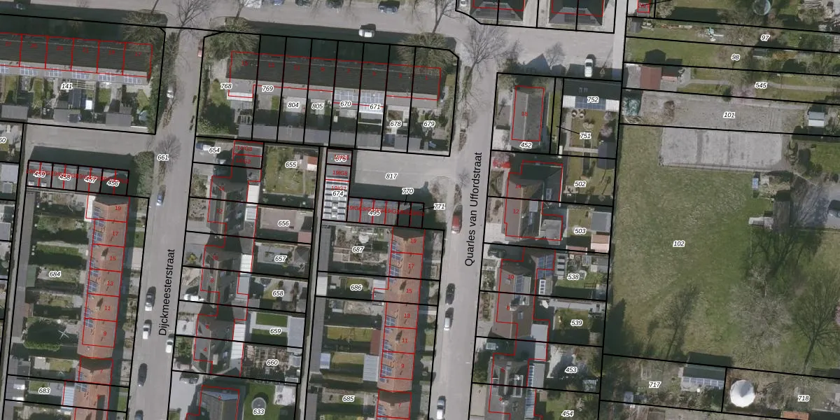 Gebruik de zoekbalk of klik op een perceel om informatie over het perceel te bekijken.