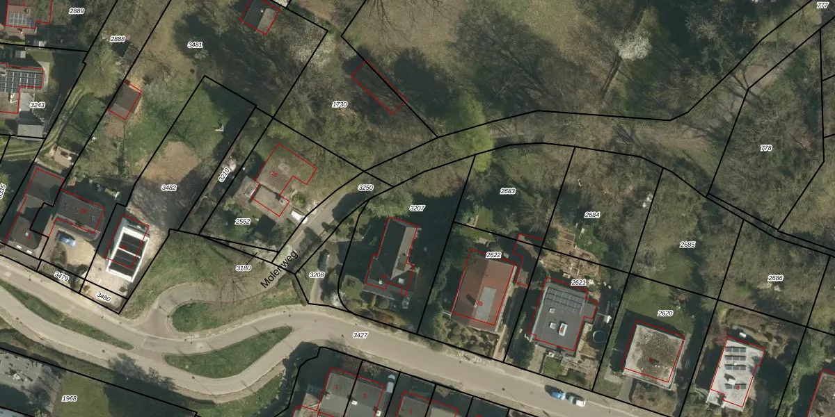 Gebruik de zoekbalk of klik op een perceel om informatie over het perceel te bekijken.