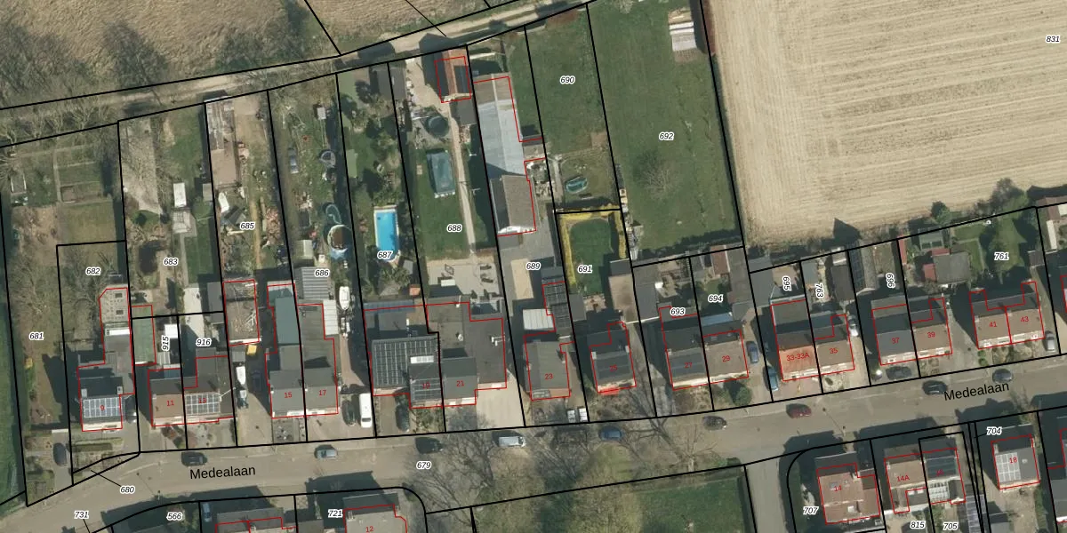 Gebruik de zoekbalk of klik op een perceel om informatie over het perceel te bekijken.