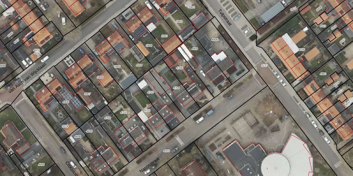 Gebruik de zoekbalk of klik op een perceel om informatie over het perceel te bekijken.
