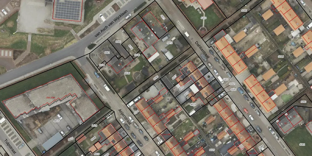 Gebruik de zoekbalk of klik op een perceel om informatie over het perceel te bekijken.