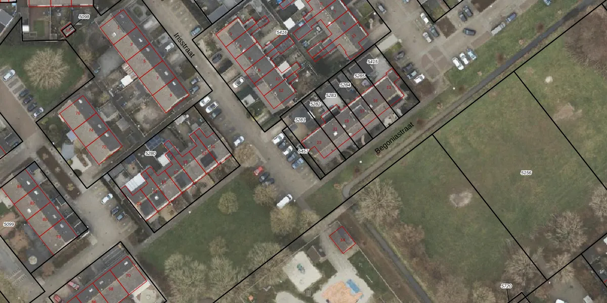 Gebruik de zoekbalk of klik op een perceel om informatie over het perceel te bekijken.