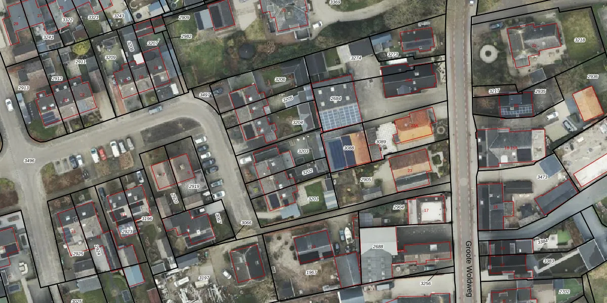 Gebruik de zoekbalk of klik op een perceel om informatie over het perceel te bekijken.