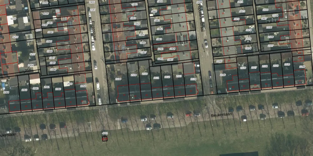 Gebruik de zoekbalk of klik op een perceel om informatie over het perceel te bekijken.